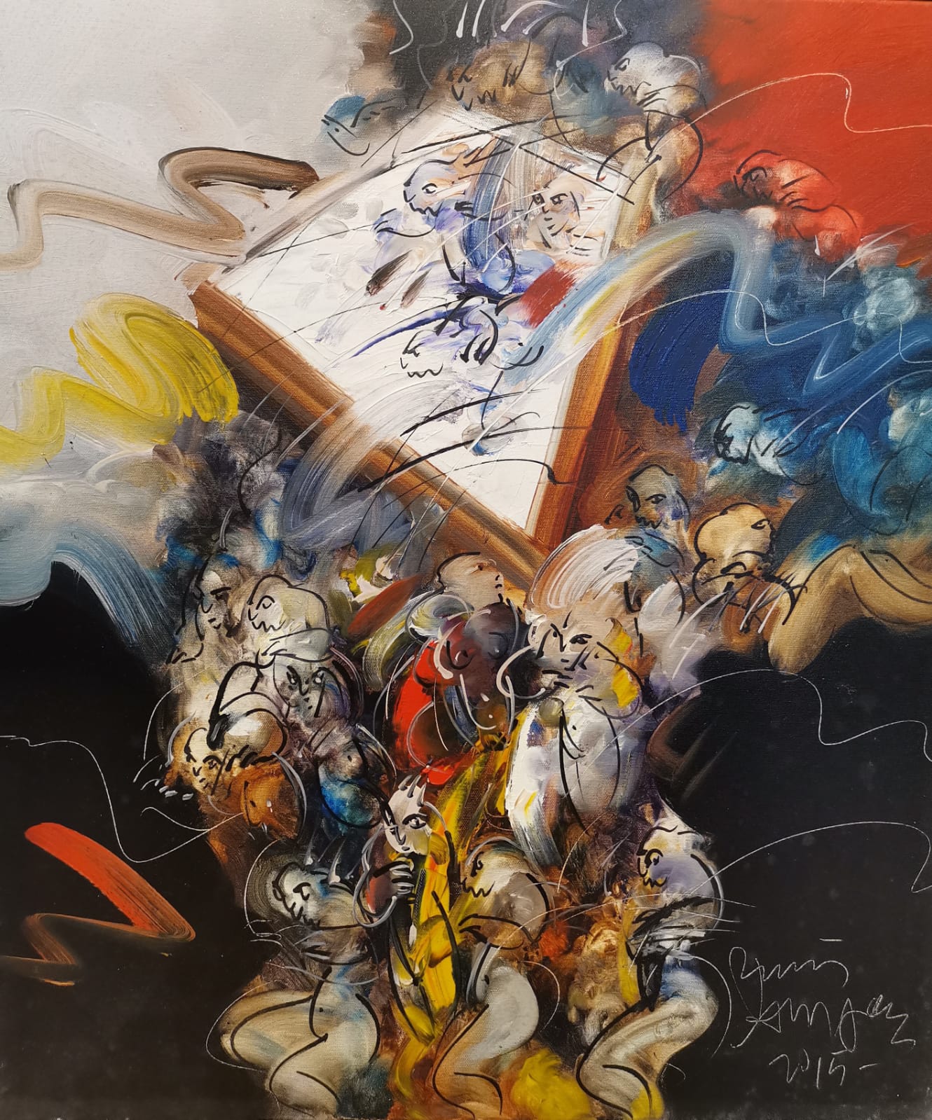 ALİ ERDOĞAN Toplum içerisinde sembolik statü, sınıfsal ve etnik temsiliyet gibi sorunlar çözülmek yerine daha da derinleşmektedir. Bu problemli durumun bende yaratmış olduğu travma bir dışavurum olarak çıkmaktadır. Yalnız benim yapıtlarımda ortaya çıkan dışavurum modern sanatın öngördüğü bir manifestonun değil kendi bireysel var olma çabamın yaratmış olduğu gerilimden kaynaklı sanrılardır.